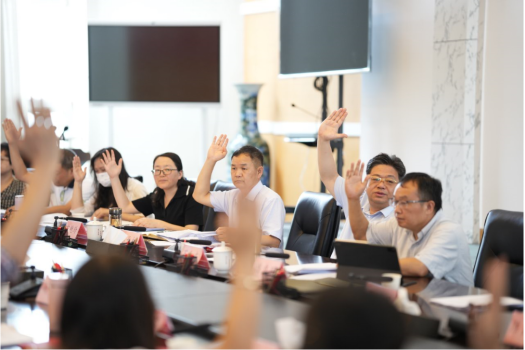 委员们举手表决选举校长潘良明教授担任校学术委员会主任委员