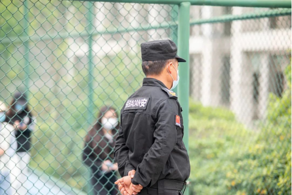 蔡家关校区,六名保卫干部驻守学校,实行保卫干部蹲点负责制,保卫干部和保安队长现场指导监督保安员履职尽责,严格贯彻执行学校疫情防控领导小组的工作指示要求。