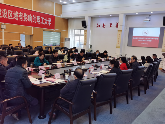 本网讯(教务处 舒群威)11月16日,2022-2023学年第一学期第三次教学工作例会在蔡家关校区喀斯特会议厅召开,副校长张开智出席会议,会议由教务处负责人主持。