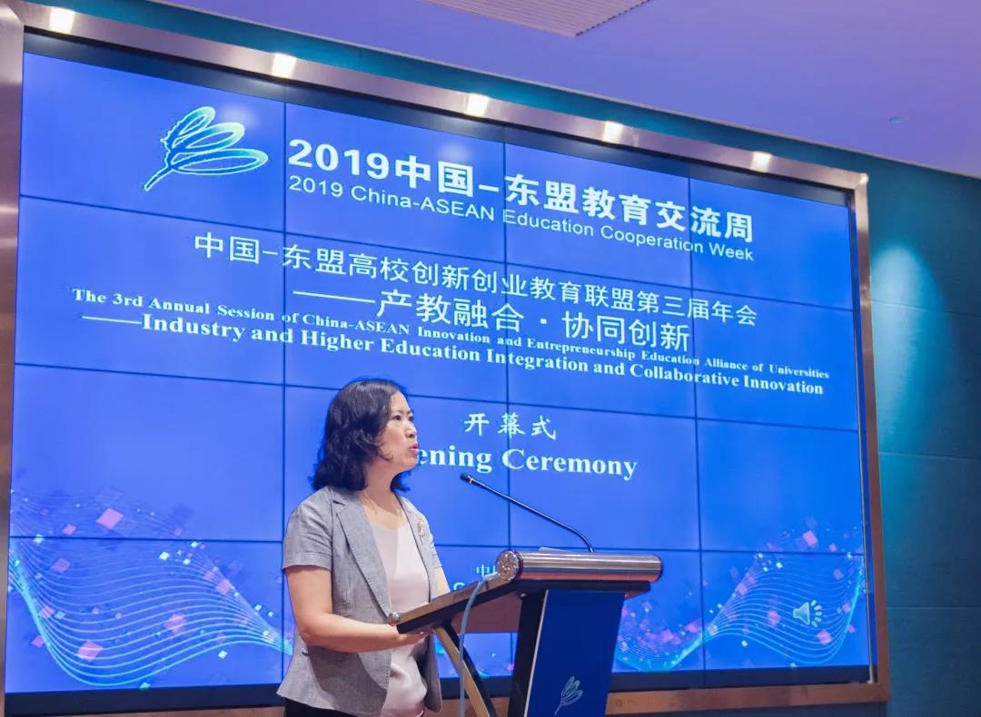 闭幕式环节,中国教育国际交流协会秘书长赵灵山致辞,他表示,中国和东盟高校深入探索创新创业教育人才培养方式,提高产教融合程度,既是提升高校人才培养、科学研究及国际化水平的重要途径,也是为区域经济社会发展提供人才和智力支持的现实要求,对建设推动区域经济社会发展有深远意义。希望通过中国-东盟教育交流周、中国教育国际交流协会年会等平台,中国-东盟高校能开展更加深入务实的合作交流,促进区域高等教育繁荣,发挥教育在促进国家或地区经济社会发展、促进就业、普惠民生等方面的作用,实现合作共赢。