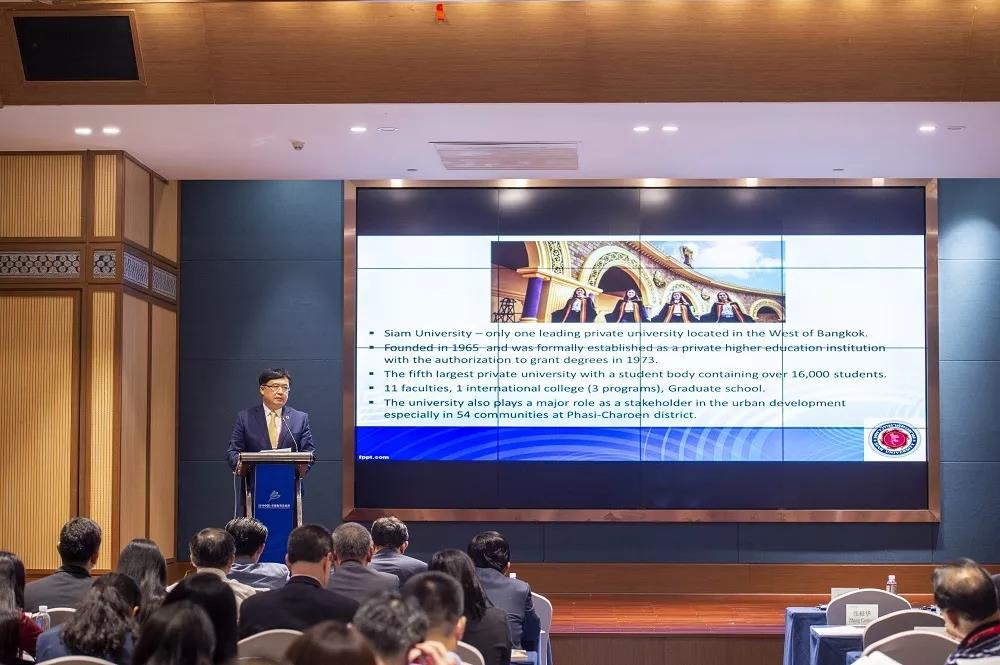 贵州理工学院副院长宋建波宣读了中国-东盟教育交流周组委会执行秘书长刘宝利发来的贺信,举行了贵州理工学院与中文产业控股集团有限公司联合共建海外分校合作协议签约仪式。