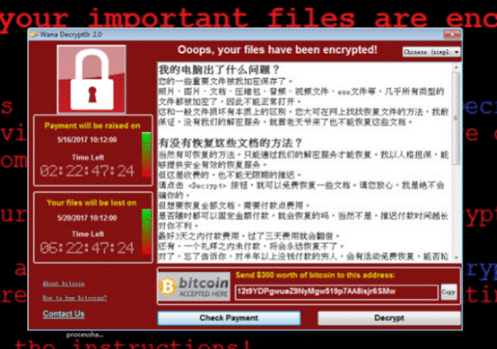 同时,要求受害者支付等价300美金的比特币的勒索金才可解锁。否则,电脑就无法使用,且文件会被一直封锁。