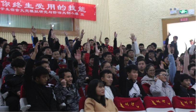 讲座以有奖问答的形式充分调动同学们的活动积极性,寓教于乐地引导同学们提高消防安全意识。