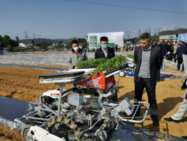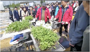 观摩会现场,参会人员参观了“秧盘供给—进土—播种—覆土”全自动作业、可实现机械式丸粒化全自动精量播种技术的蔬菜钵苗精量播种机,系统观摩了辣椒“播种—育苗—整地—起垄—覆膜—移栽—植保” 的全程机械化种植生产,目睹了科技助力农村产业革命的场景。辣椒田通过机械化耕种,农机与农艺的融合,既能减轻劳动强度,又能降低生产成本,提高效率,同时提高农业科技水平,促进增收。