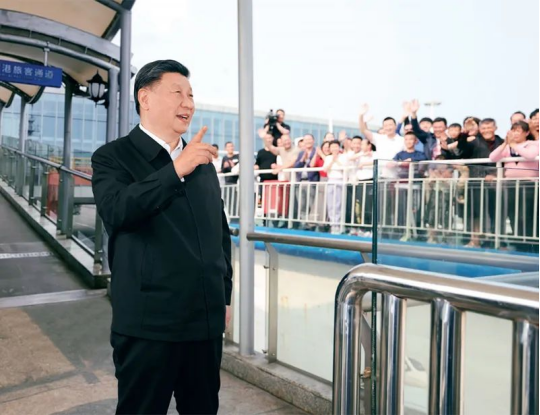 2023年4月10日至13日,中共中央总书记、国家主席、中央军委主席习近平在广东考察。这是10日下午,习近平在湛江市徐闻县徐闻港泊位码头,同船上的旅客亲切交流。