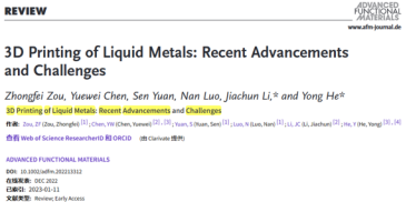 日前,贵州理工学院机械工程学院邹中妃博士以第一作者身份在国际顶级期刊《ADVANCED FUNCTIONAL MATERIALS》(TOP期刊,中科院一区,影响因子IF = 19.924)上发表题为《3D printing of liquid metals: recent advancements and challenges》综述论文,并被Web of Science数据库检索。