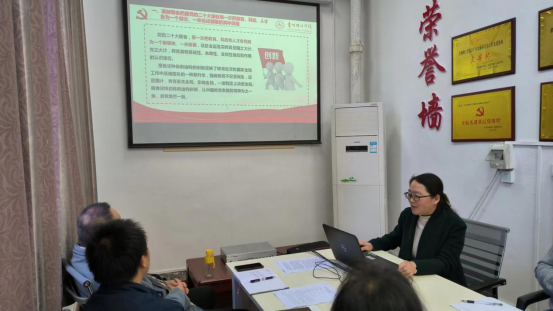 本网讯(教务处 罗敏)为深入学习贯彻党的二十大精神,学习宣传贯彻习近平新时代中国特色社会主义思想,推动学习往深里走、往心里走、往实里走,2022年11月28日,教务处党总支书记李源,教务处教师党支部书记安艳玲在综合楼213会议室围绕“学习贯彻党的二十大精神”作专题宣讲。