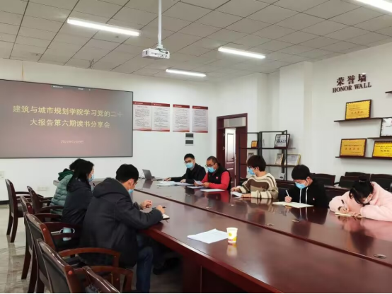本网讯(建筑与城市规划学院 谷晨旭)为持续深入学习宣传贯彻党的二十大精神,2022年12月9日建筑与城市规划学院学习党的二十大报告读书分享会第六期开展,本次分享会由教师党支部书记颜政纲召集并主持学习。学院党总支书记唐丽华、教师代表及学生代表参加。