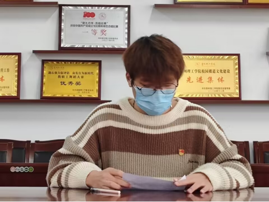 唐丽华同志强调,今后学院、党支部要通过反复诵读、反复学习,深刻理解党的二十大报告精神,把党的二十大报告精神融入思政课、融入到专业课教育教学中,坚持不懈地用习近平新时代中国特色社会主义思想凝心铸魂,用社会主义核心价值观铸魂育人,培养德智体美劳全面发展的社会主义事业建设者和接班人。