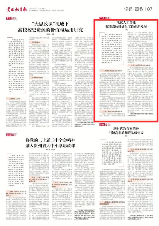 同时,人工智能技术不仅能够直接提供问题的答案,还能依托强大的上下文理解与语义分析能力,为辅导员提供解决问题的创新思路与实用建议,进而促进其问题解决能力的全面提升。因此人工智能技术与高校辅导员工作的有效融合,极大地提升了高校辅导员工作的实效性。
