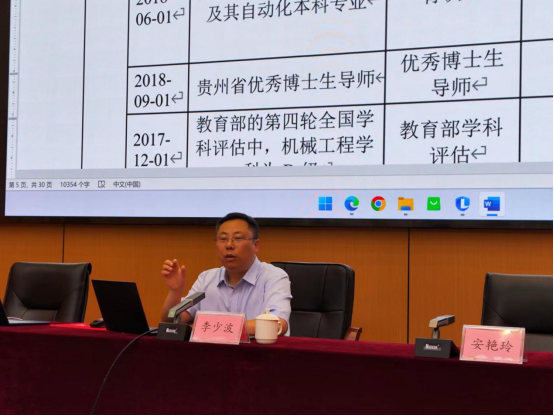 李少波教授有着丰富的教学管理经验,曾荣获贵州省研究生教学成果特等奖、贵州省第十届高等教育教学成果奖特等奖等。李少波教授结合乐游棋牌本科教育实际,从教学成果与教学成果奖认知、教学成果奖的培育、教学成果奖的申报、教育教学成果奖案例等四个方面分享了省级教育教学成果申报工作的经验,对如何撰写申报书进行了详细指导,并对教育教学成果奖培育路径、成果凝练及申报注意事项等提出了指导性的意见和建议。他指出,工作在平常,在改革中挖掘,在实践中培育,要注重学科交叉和融合,融入到成果申报中,做好成果凝练与总结。