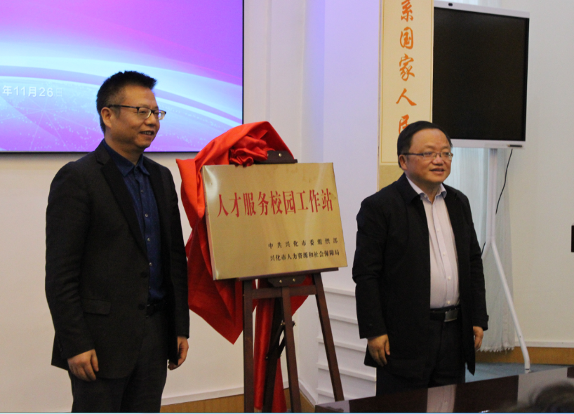 会议期间,双方签署了学生实习就业合作框架协议,并举行了兴化市人才服务校园工作站揭牌仪式。