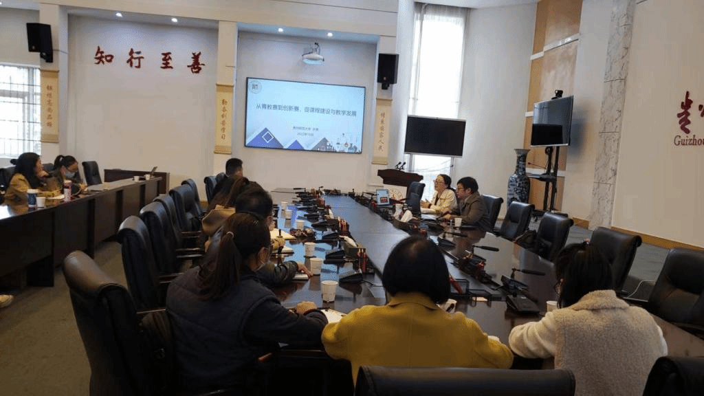 此次专题讲座线上线下同时进行,线上会场通过腾讯会议直播,线下会场设在蔡家关校区喀斯特会议厅,讲座由教务处处长安艳玲主持。拟申报国家一流本科课程负责人、校级青年教师教学竞赛、教师创新大赛、课程思政大比武等比赛获奖者、校级一流课程、混合教学模式课程建设项目负责人等共100余名教师线上线下参加了讲座。