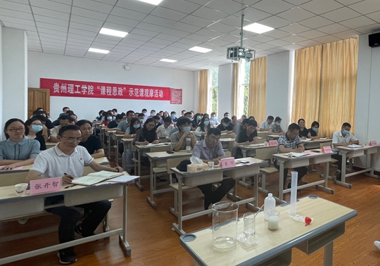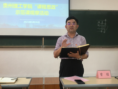 (本网讯 图/姚楠;文/吕婕梅;技术支持/曾劼)为持续开展好党史学习教育,进一步推进学校课程思政建设工作,并提高教师对课程思政的理论认识及教学实操能力,2021年8月26日下午,贵州理工学院在蔡家关校区第二教学楼213教室开展“课程思政”示范课观摩活动,此次活动由分管教学副校长张开智主持,乐游棋牌曾羽、胡兴灿、林长松、校长助理莫立坡出席活动,各教学单位分管教学副院长(副主任)、教研室主任及教师代表参加了活动。