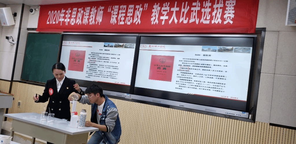 (本网讯苏镜萍)9月17日,贵州理工学院2020年省级高校非思政课教师“课程思政”教学大比武选拔赛在蔡家关校区第三教学楼举行。本次选拔赛经各教学单位遴选推荐,共21名教师参赛。为确保竞赛的公平、公开、公正,竞赛邀请校内教学经验丰富的教师担任评委,参照省级高校非思政课教师“课程思政”教学大比武的流程,依据《2020年贵州省高校非思政课教师“课程思政”教学大比武评分标准》有关规定,参赛教师分别从教学设计、说课、课堂教学三个环节进行比赛。