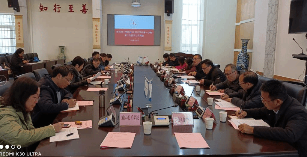 本网讯(教务处罗敏)12月8日,在喀斯特会议厅召开2020-2021学年第一学期第三次教学工作例会,各教学单位分管教学工作负责人、创新创业中心、工程训练中心及教务处相关人员参加会议,会议由副院长、教务处处长张开智主持。
