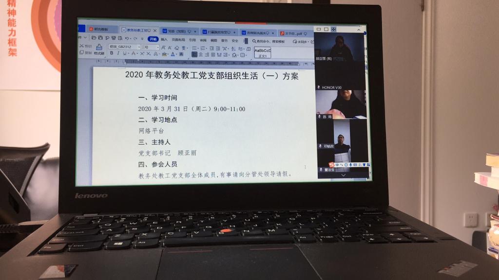 本网讯(教务处 罗敏)3月31日9:00,教务处教工党支部全体党员通过线上视频开展党组织生活学习会议。会议由党支部书记顾亚丽主持。