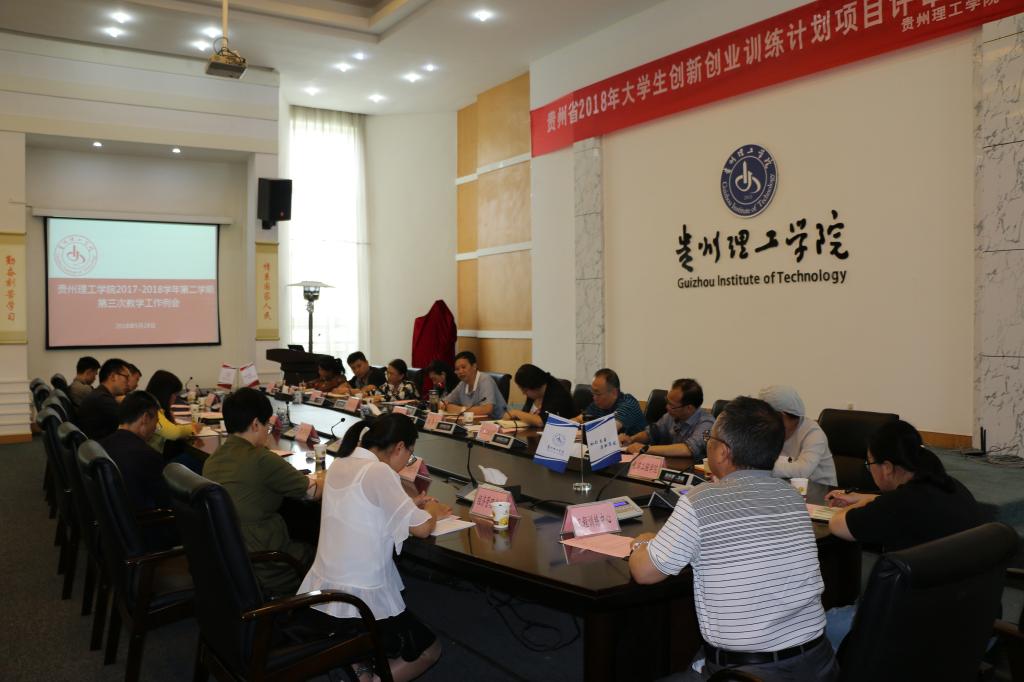5月28日下午,贵州理工学院2017-2018学年第二学期第三次教学工作例会在喀斯特会议厅召开,副校长梁杰出席会议,各学院(教学部、中心)院长(部长、主任)、分管教学工作的副院长(副部长、副主任)、教学秘书,教务处、学生处、后勤处、创新创业中心负责人及教务处相关人员参加会议。会议由教务处处长邵芳主持。