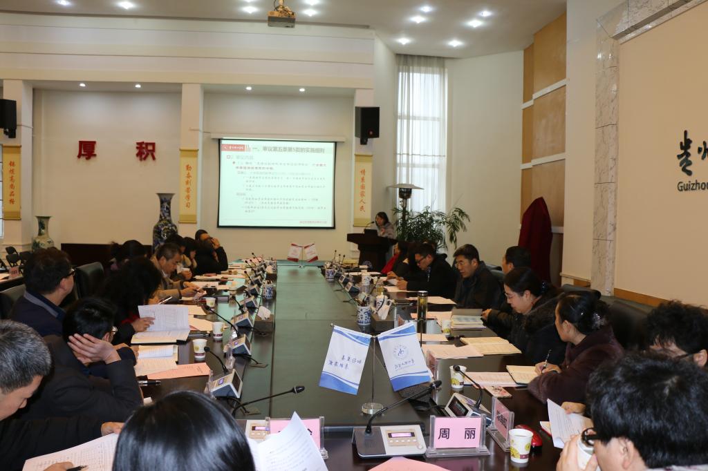 2018年1月5日上午,龙奋杰校长在喀斯特会议厅主持召开贵州理工学院第一届学位评定委员会第四次会议,副校长梁杰、宋建波出席会议,第一届学士学位评定委员会委员参加会议。