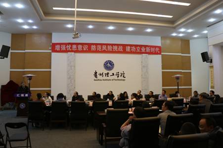 本网讯(教务处 周新国)12月28日下午,贵州理工学院2018-2019学年第一学期第四次教学工作例会在喀斯特会议厅召开,副校长梁杰出席会议,各学院(教学部、中心)院长(部长、主任)、分管教学工作的副院长(副部长、副主任)、教学秘书,教务处、学生处、后勤处、评估中心、创新创业中心、网络中心负责人及教务处相关人员参加会议。会议由教务处处长邵芳主持。