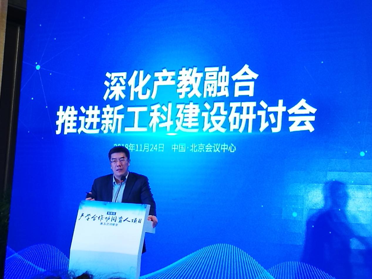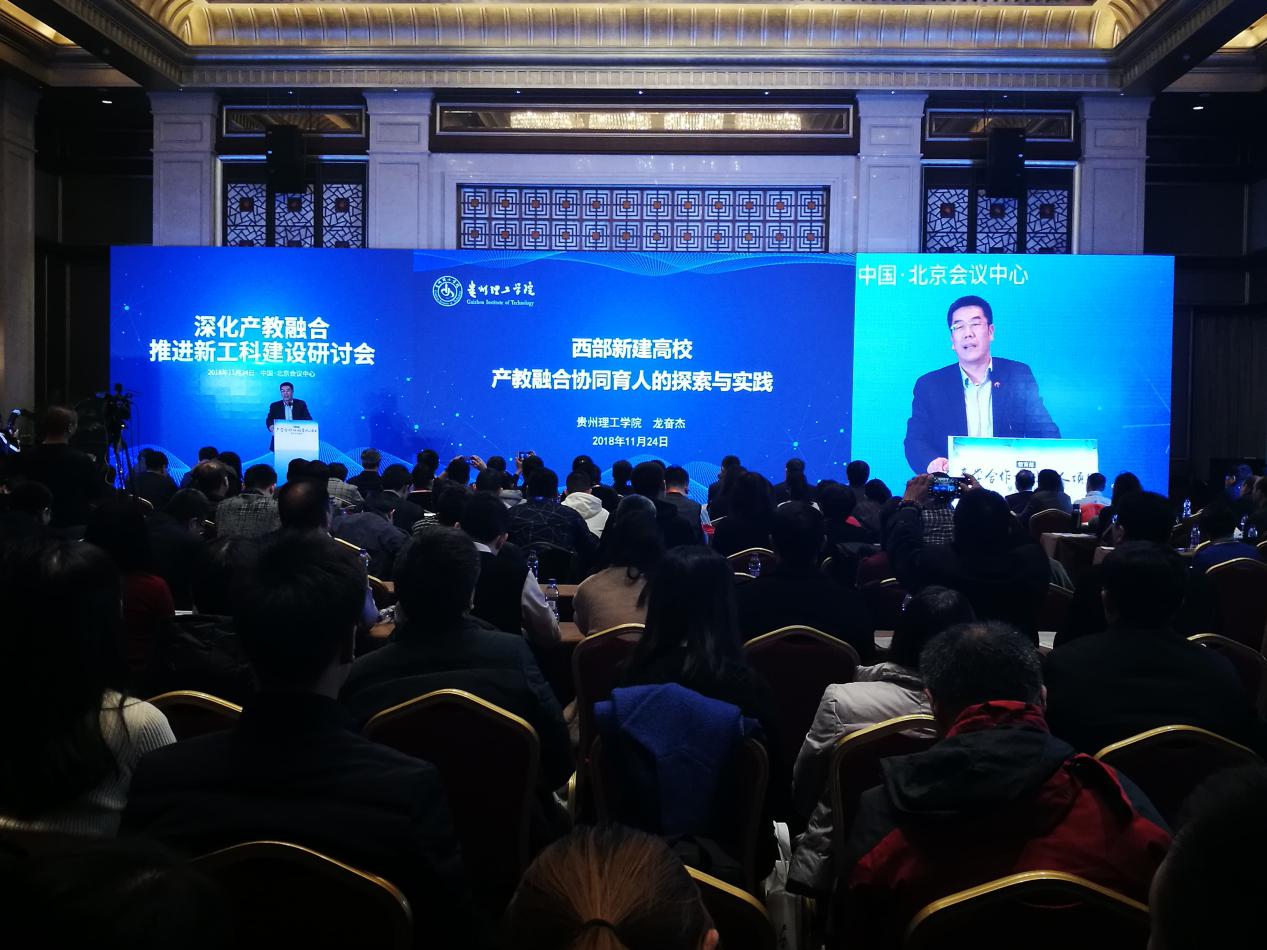 本网讯(教务处邓毓政)2018年11月24日上午,由教育部新工科建设研究与实践专家组等单位联合主办的深化产教融合推进新工科建设研讨会在北京会议中心举行,乐游棋牌龙奋杰院长应邀参加研讨会并作了题为“西部新建高校产教融合协同育人的探索与实践”的报告。
