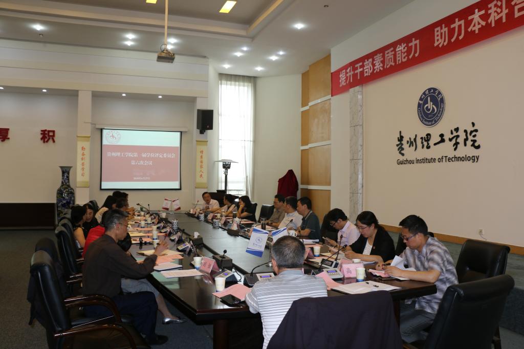 (本网讯 教务处 徐波/文 周新国/图)2018年6月27日上午,龙奋杰校长在喀斯特会议厅主持召开了贵州理工学院第一届学位评定委员会第六次会议,副校长梁杰、王建平及校长助理李滚出席,第一届学士学位评定委员会委员参加。