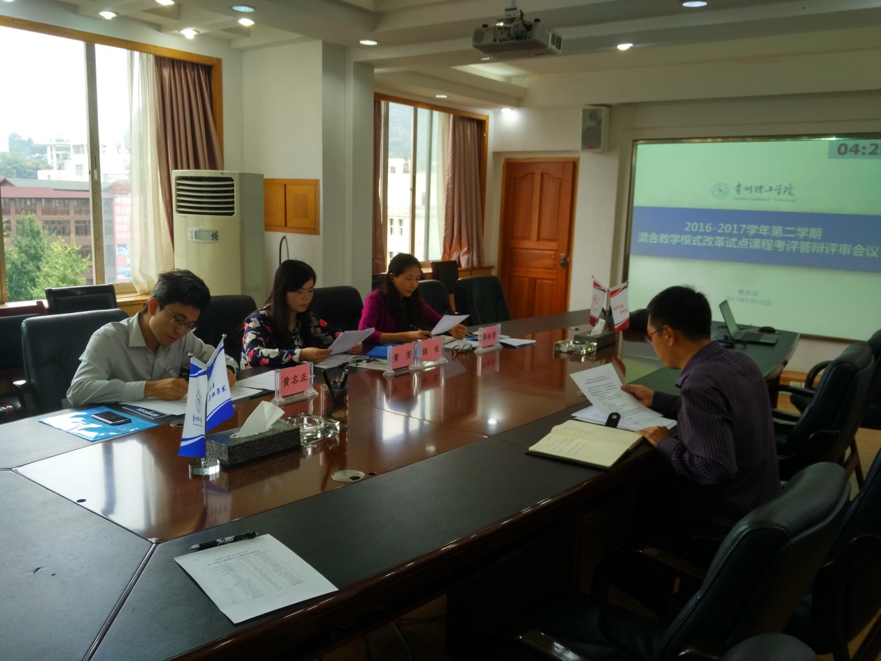 2017年9月15日,贵州理工学院2016-2017学年第二学期混合教学模式试点课程考评答辩评审会议在行政楼五楼会议室召开,乐游棋牌2016-2017学年第二学期18个混合教学模式改革试点课程参参了答辩,本次答辩评审会议邀请了校内专家担任评审专家。