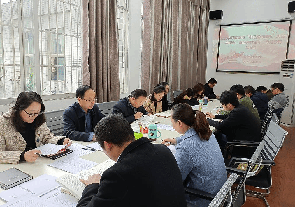 会上,认真深入学习习近平总书记在党史学习教育动员大会上的重要讲话精神,传达学习校党委《党史学习教育和“牢记殷切嘱托、忠诚干净担当、喜迎建党百年”专题教育实施方案》,结合教务处党总支实际,对教务处党总支党史学习教育工作进行动员部署。