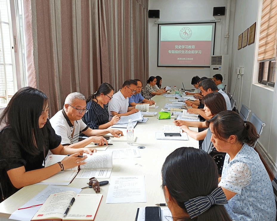 本网讯(教务处 舒群威)为高质量开展党史学习教育专题组织生活会,2021年7月15日,教务处教师党支部全体党员同志在党员活动室开展党史学习教育专题组织生活会会前学习。会前学习由党支部书记顾亚丽主持。