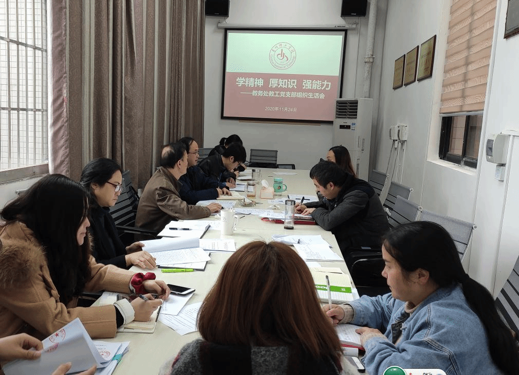 本网讯(教务处 罗敏 )2020年11月24日,教务处教工党支部在教务处党员活动中心开展“学精神 厚知识 强能力”学习十九届五中全会精神组织生活会。党支部全体党员参加会议,会议由教工党支部书记顾亚丽主持。
