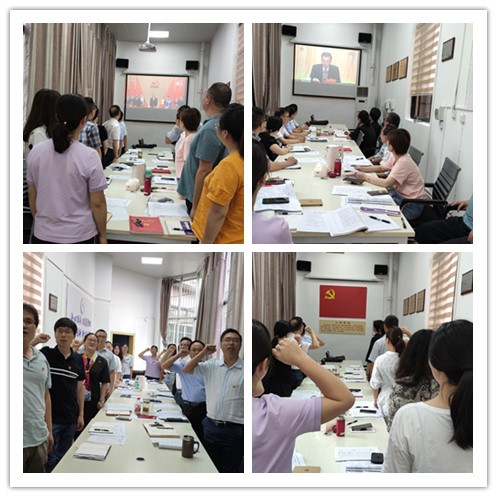 本网讯(教务处 罗敏 舒群威)2020年7月1日,在综合楼213会议室教务处党总支召开“重温入党誓词 过政治生日”主题党日活动,庆祝中国共产党建党99周年。党总支全体党员参加主题党日活动,诚挚邀请了全处非中共党员同志列席本次活动,活动由教务处党总支书记李源主持。