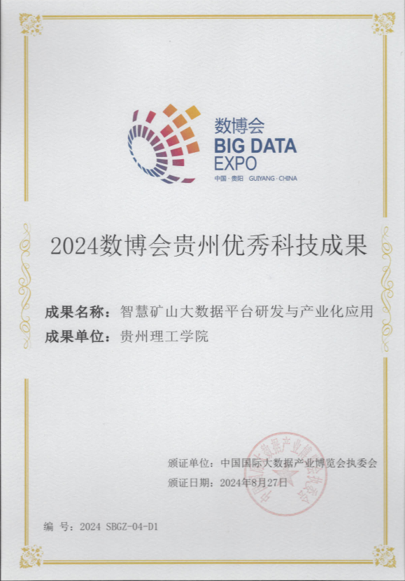 8月27日下午,2024中国国际大数据产业博览会领先科技成果发布会在贵阳举行,乐游棋牌主持完成的“智慧矿山大数据平台研发与产业化应用”入选2024数博会贵州优秀科技成果。