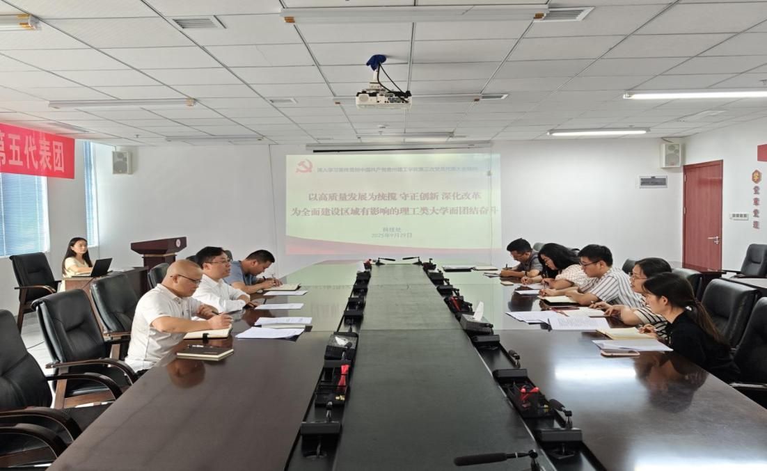 2025年9月29日下午,贵州理工学院科技处召开全体工作人员会议,专题传达学习贯彻中国共产党贵州理工学院第三次党员代表大会精神,切实将思想和行动统一到学校党代会决策部署上来,为学校高质量发展凝聚科创力量,副院长李少波出席会议并做指导工作。