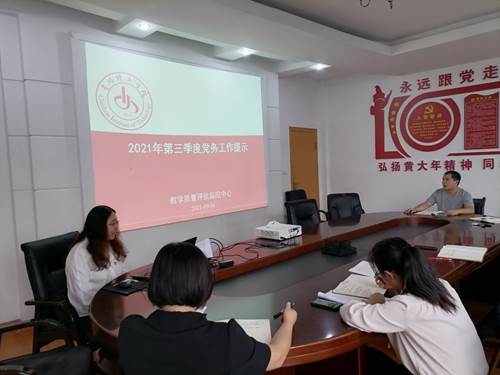 本网讯(评估中心 夏黄晶/文 于霞/图)2021年9月6日下午,机关评估中心在喀斯特二楼会议室组织召开党务工作培训会并部署落实第三季度党务工作。会议由评估中心主任邵芳主持,评估中心在岗全体人员参加。