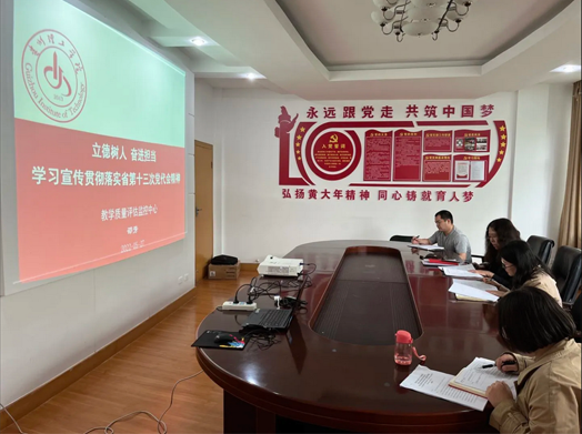本网讯(教学质量评估监控中心 于霞/文)根据学校党委组织部要求,机关评估中心党支部于2022年5月27日下午2:30,组织了“学习贯彻省第十三次党代会精神”主题党日活动。