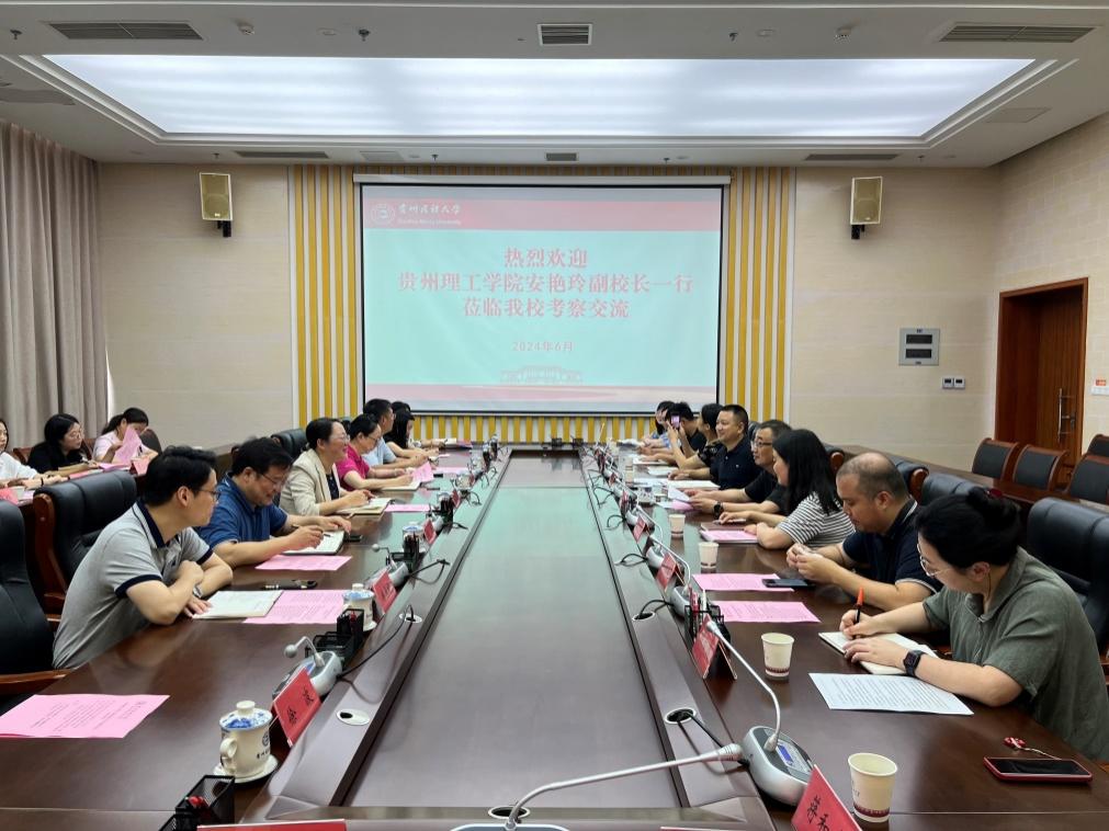 本网讯(图/文 夏黄晶)为学习借鉴兄弟院校本科教育教学审核评估相关工作的宝贵经验和先进理念,6月21日上午,校党委委员、副校长安艳玲率队赴贵州民族大学就本科教育教学审核评估工作开展调研,教务处、发展规划处、国有资产管理处、人事处及评建办工作人员参与调研。贵州民族大学党委委员、副校长周杰及教务处、教育评估中心、招生就业处等有关职能部门负责同志及贵州民族大学评建办工作人员接待了乐游棋牌一行。会议由教育评估中心主任马飞主持。