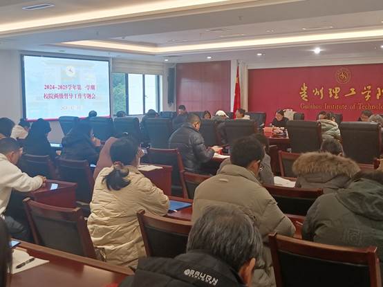 本网讯(王新颖 文/图)12月11日下午14:00,学校在知行楼605会议室组织召开校院两级教学督导工作专题工作会,校院两级教学督导组成员、教务处、学生就业指导服务中心、教学质量评估监控中心相关人员参加会议。会议由评估中心教学评估科科长魏节敏主持,党委委员、副院长安艳玲出席。