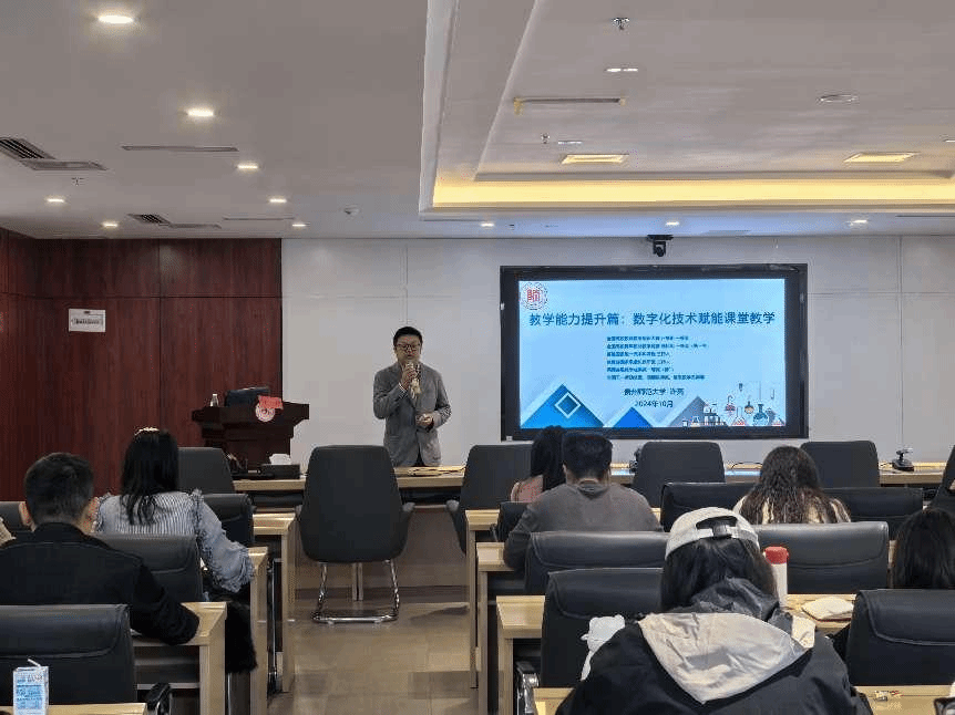 贵州师范大学教授、全省高校“金师”、全国优秀教师、许亮应邀为全体新进教师作“高校教师教学能力培养”专题培训,许亮教授以“教学能力提升篇:数字化技术赋能课堂教学”为切入点,和老师们共同探讨如何更好地将数字化技术融入课堂教学,提升教学质量和效果。相信在数字化技术的赋能下,课堂教学将迎来新的辉煌,为培养新时代的优秀人才奠定坚实基础。