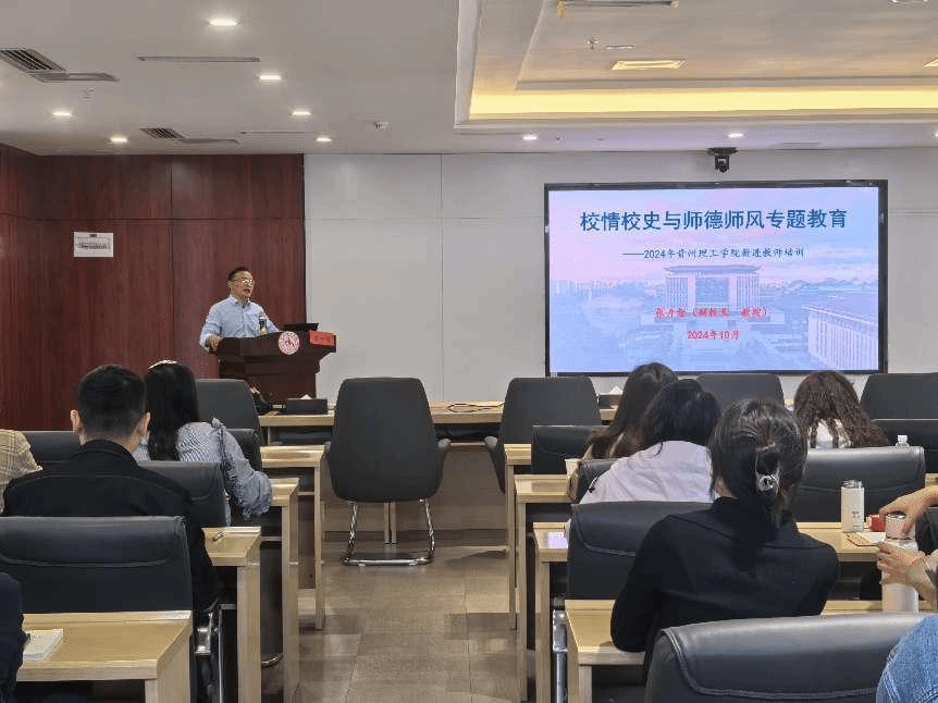 副院长张开智教授与2024年贵州理工学院新进教师们开展了一次“谈心”式的授课,张开智教授在讲座中深入解读爱国主义的内涵和时代价值。通过讲述历史故事、分析时事热点,激发教师的爱国情怀,引导教师将爱国主义精神融入到教育教学中。开展师德师风专题培训,把师德师风作为教师评价的第一标准,才能培育出“有理想信念、有道德情操、有扎实学识、有仁爱之心”的新时代“四有”好老师。让老师们进一步明确了自己的职业道德规范,增强了教书育人的责任感和使命感。教师们表示要以高尚的师德师风影响和感染学生,做学生的良师益友。张开智教授生动讲述了学校的校情校史,为老师们带来了一场别开生面的爱国、爱校教育的专题辅导报告。