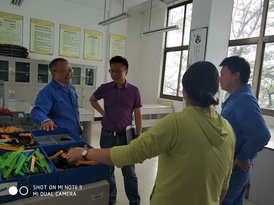 胡校长一行实地查看了中心的金工、电工各实训车间及耗材仓库,高兴勇就工程训练中心的建设和教学条件现状向胡校长进行了介绍。胡校长在认真听取了解中心情况后,结合工作就中心发展与高兴勇、钟晓锋进行交流与探讨,同时针对中心下一步的工作提出了几点希望和要求:一是有针对性地改善中心现有实习场所环境问题,保障教学条件,迎接本科合格评估;二是加强校企合作,达到资源互补、利益共享、工学结合、共同培养人才的目的;三是打开思路,在实践教学中,开发好的项目和技术,助力国家脱贫攻坚政策,充分发挥出贵州理工服务地方经济、培养应用型本科人才的特点。