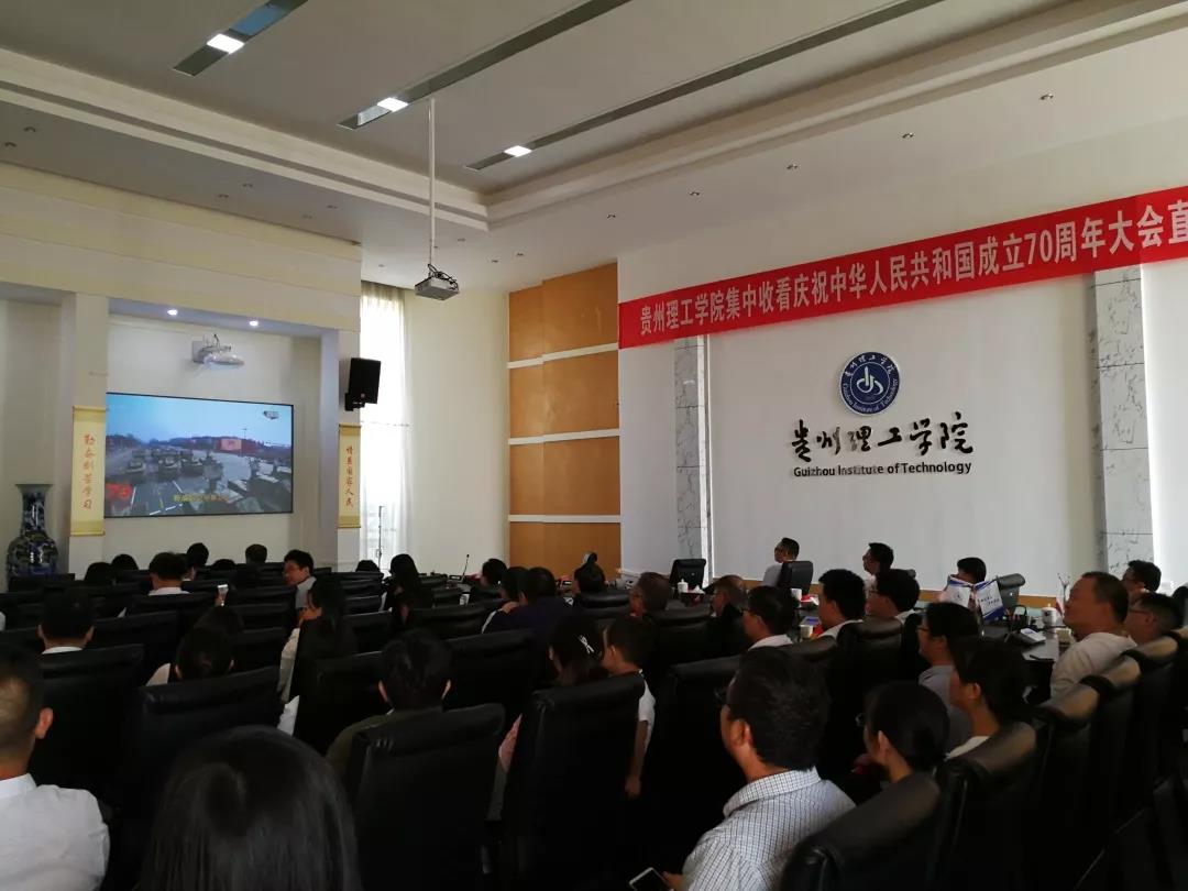升旗仪式后,乐游棋牌师生在喀斯特会议厅、贵安校区分会场、逸夫小礼堂、各学院会议室等会场分别集中收看直播盛况。习近平总书记在庆祝中华人民共和国成立70周年大会上的讲话振奋人心、凝心聚力,阅兵中展示的新武器、新装备、新方队以恢宏、磅礴之势,一次次震撼着理工师生的心灵,他们时而鼓掌,时而欢呼,时而赞叹。随后的群众游行环节将观看活动引向深入。