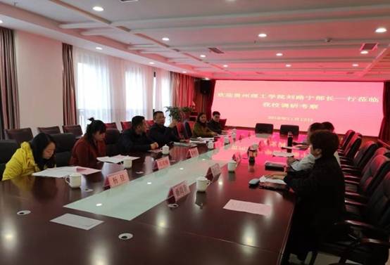 贵州理工学院党委统战部部长刘路宁、安顺职业技术学院副院长雷鸣及相关职能部门负责人参加了调研。调研中,双方就两校的基本情况、“校农结合”开展情况、当前政策和措施的落地情况、以及此项工作开展过程中所遇到的问题、双方各自的优秀经验等几个方面进行了充分而深入的交流讨论。调研活动干货满满,为吸取对方优秀经验,避免“入坑”和少走弯路,提供了宝贵的参考。