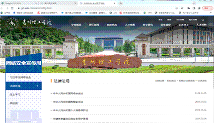 1、在贵州理工学院官网设置了网络安全宣传周专栏,推送网络安全知识和相关微视频,以深入贯彻习近平总书记关于网络强国的重要思想为重点,加强《网络安全法》宣传,普及师生的网络安全知识,提升网络安全意识和防护技能。