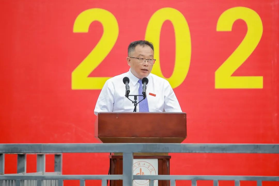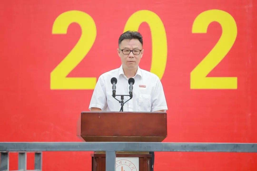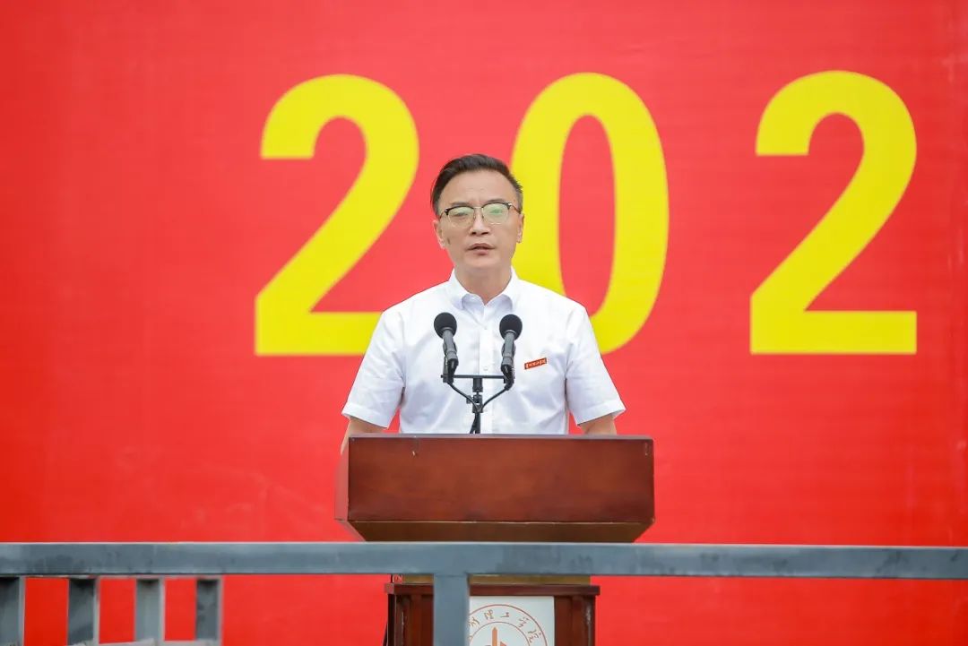 党委副书记、校长潘良明代表全校师生员工对2023级新生的到来表示热烈的欢迎,向伴随同学们一路拼搏的父母、老师和亲友们表示最诚挚的感谢!他以《不忘来时路 不负今朝景 不怠明日行》为题,授开学第一课,希望同学们在欣欣向荣的贵安大学城这片热土上,进一步充实知识、进一步扩容朋友圈、进一步拓展眼界和见识、尽快明确自己的人生方向、理想、追求,与师长、与同辈在新起点、新舞台、新征程上一起肩负理工人的新使命,书写理工人的新篇章。勉励同学们要知道来处,未来人生才有参照;把握当下,未来人生才有可期;仰望未来,当下人生才有动力,要以更加昂扬和认真的姿态对待大学中的每一个环节,自我激励、自我提升,争取早日成为一位合格的人才。