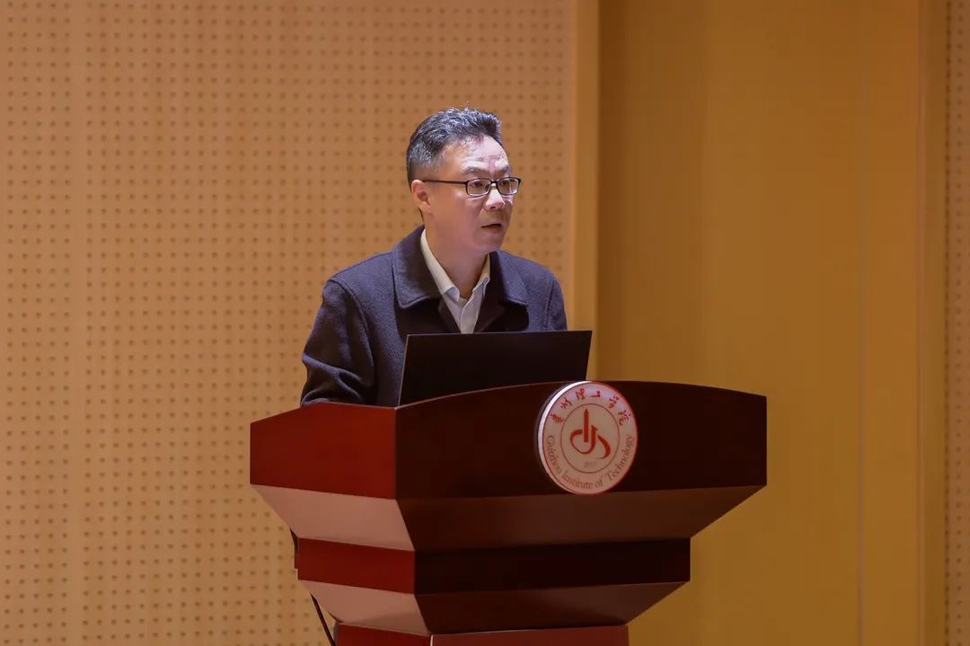 贵州理工学院副院长张开智教授以《贵州理工学院校工结合实践》为题,围绕校工结合,介绍了贵州理工学院的具体实践。