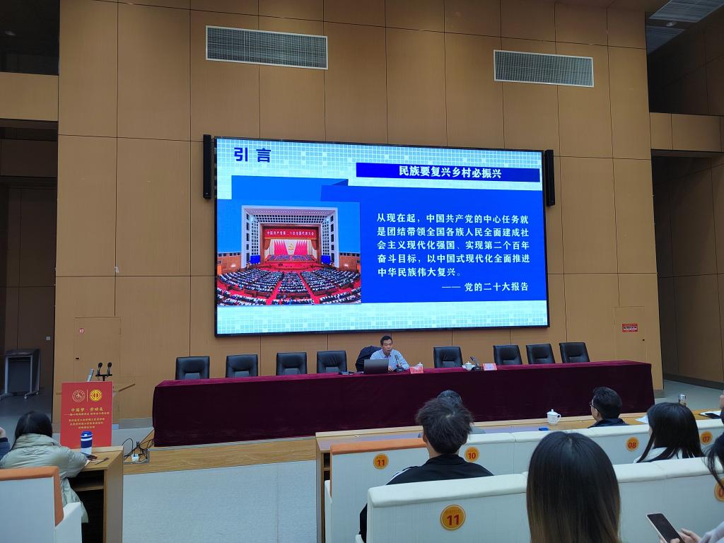 龙友华教授为大家作题为《以中国式现代化全面推动乡村振兴》的宣讲。他理论联系实际,深入浅出讲述了中国式现代化背景之下的乡村振兴及个人在乡村振兴中的工作体会与感悟。