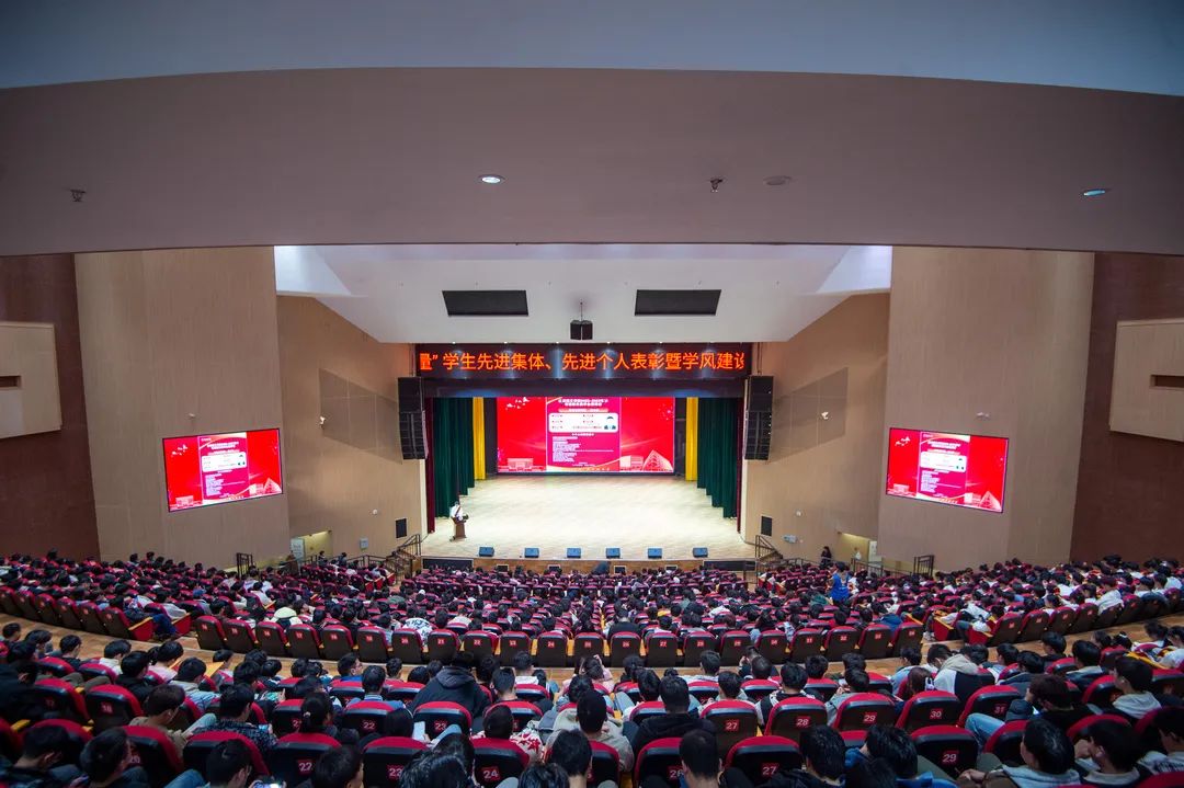 校学风建设领导小组成员单位负责人、各招生学院分管教学和学生工作负责人及师生代表共计千余人参加大会。表彰大会在庄严的国歌声中拉开序幕。潘良明代表学校向所有获表彰的学生集体和个人表示热烈的祝贺。他指出,全校上下要巩固拓展学习贯彻习近平新时代中国特色社会主义思想主题教育成果,全面贯彻落实党的二十大精神和习近平总书记关于教育的重要论述,贯彻落实全国教育大会和全省高等教育高质量发展大会精神,把加强教风学风建设与坚守为党育人、为国育才的初心使命,与推进中国式现代化建设结合起来。要从以理想信念树学风,以关键指标引学风,以优良教风正学风三个方面持续发力,通过加强教风学风建设组织管理,凝聚形成工作合力,完善制度保障供给,实施质量提升专项行动等工作举措,深化形成“教”“学”“管”齐头并进的共抓学风态势,打造“教在理工育新人 学在理工铸优才”的教风学风建设品牌,助力理工学子早日成长为具有扎实专业知识、鲜红政治品格、较好数字化素养的新时代红色工程师。