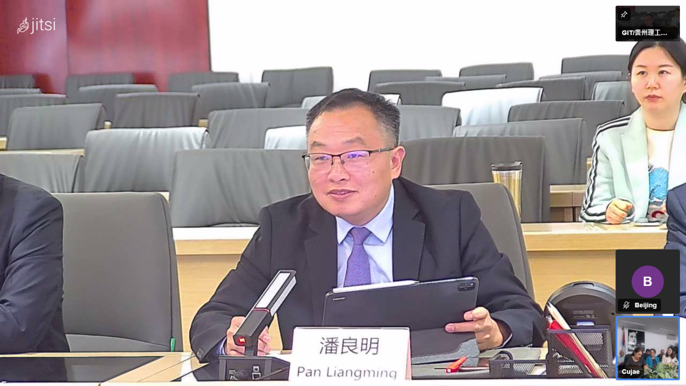 本网讯(国际交流与合作处)3月22日上午,乐游棋牌与古巴哈瓦那科技大学线上交流会在知行楼607会议室举行,院长潘良明,副院长张开智、杨鹏,相关职能部门及二级学院负责人参加会议。会议由杨鹏主持。