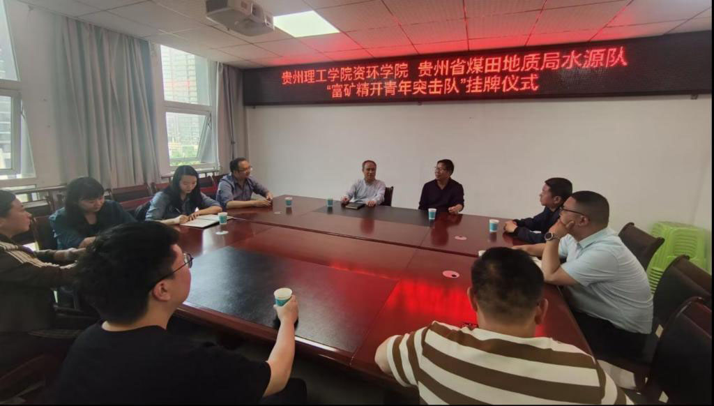 本网讯(党委宣传部)2024年4月29日下午,贵州理工学院资源与环境工程学院全体班子成员及学院青年教师代表前往贵州省煤田地质局水源队开展产学研交流,并举行“富矿精开青年突击队”挂牌仪式。