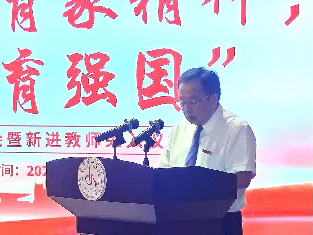 “在过去的一年里,学校全体教师以高度的责任感和使命感,爱岗敬业,无私奉献,为学校的建设发展作出了积极贡献。在课堂上,你们用智慧和汗水,点燃学生的求知欲望,引导他们在知识的海洋中遨游。在课后,你们耐心辅导,关心关爱每一位学生,成为他们成长道路上的良师益友。在科研服务上,你们勇于探索,不断创新,为服务经济社会发展贡献理工力量。在管理和服务岗位上,你们兢兢业业、默默奉献,为学校的建设发展提供了坚实保障。”校党委副书记、校长潘良明在致辞中说,我们要深入学习贯彻党的二十届三中全会精神,贯彻落实省委十三届五次全会部署,牢记为党育人、为国育才使命,大力弘扬教育家精神,以更加饱满的热情和更加坚定的信心投身到教育事业中去,用过硬的专业能力、渊博的知识水平、深沉的仁爱之心,自觉担当起学生健康成长指导者和引路人的责任,积极探索教育教学的新模式、新方法,以学生为中心、产出为导向的总体思路,利用新颖的思维视角和方法策略解决教学、科研中的复杂问题,激发学生及自身的创新潜能。激励和引导学生树立综合能力培养和终身学习的理念,不断拓宽知识边界,深化知识结构,在探求真理、追寻新知中实现全面发展,为中国式现代化的贵州实践培养更多高素质人才。